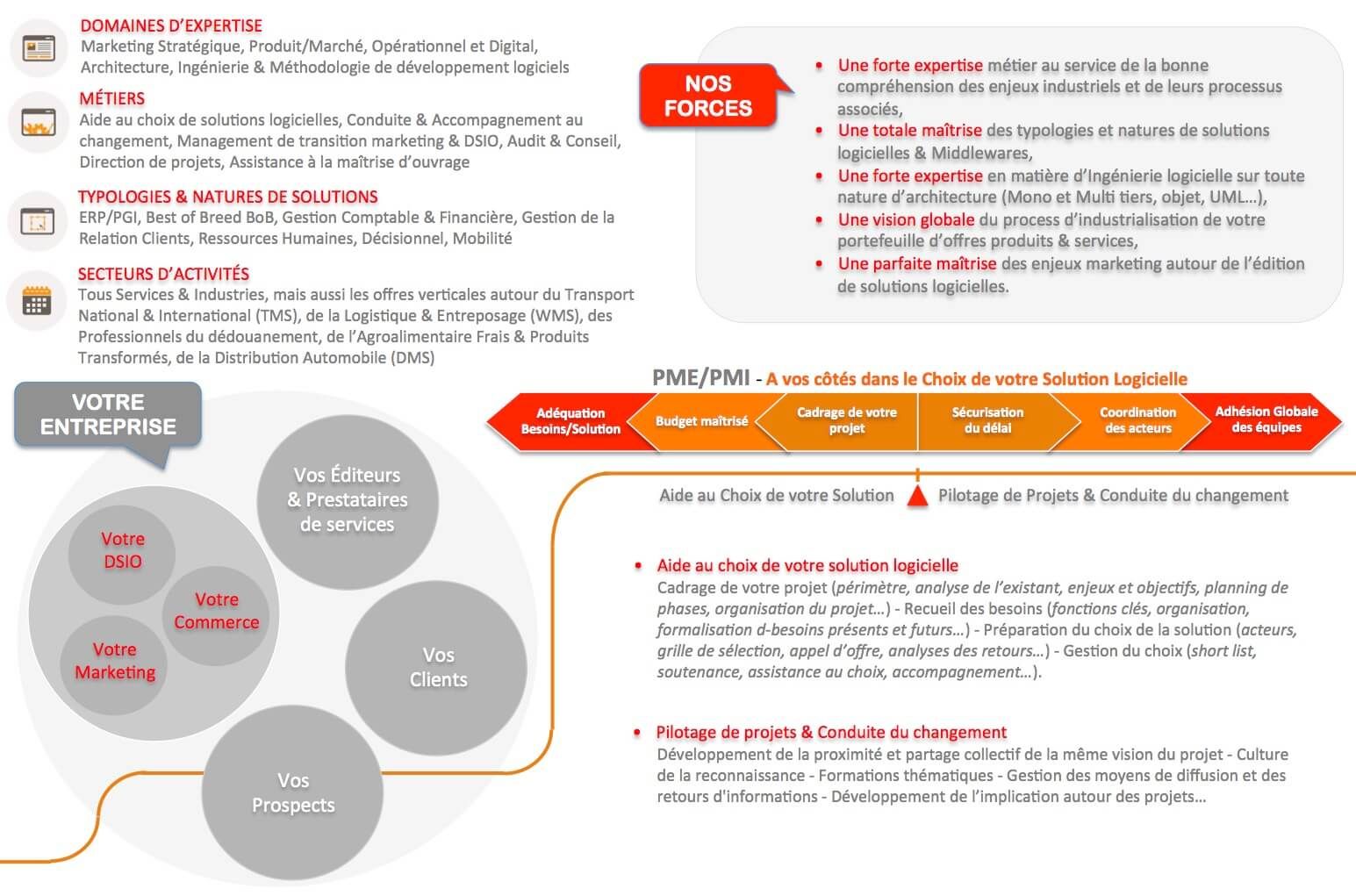 de leur solution logicielle (progiciels de gestion généralistes et solutions verticales métiers), Middleware (Business Intelligence, E-commerce, Mobilité...),